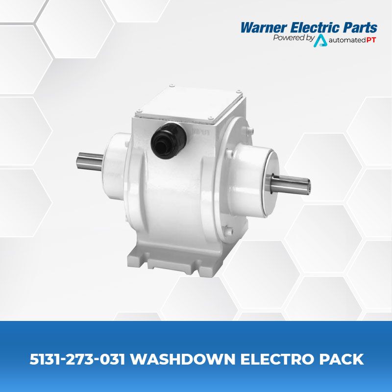 Washdown Electro Pack Clutch/Brake Model No. – EP-400-W Voltage D.C. – 90 Original Part No – 5131-273-031 If your clutch/brake application demands consistent, repeatable performance cycle after cycle, through wet and dry conditions, choose Warner Electric’s Washdown Electro Pack Clutch/Brakes. Even in the most demanding environments, Washdown Electro Pack Clutch/Brakes (EP-W) will weather the storm. Designed specifically for use in food, sanitary or any other washdown application, these packaged clutch/brakes are totally enclosed in smooth, completely sealed, rugged enclosures to keep wear particles in and contaminants out. Washdown Electro Packs are factory aligned, assembled and burnished for consistent out-of-the-box performance. USDA Approved coating Smooth exterior Shielded/sealed bearings Available in 70 and 270 lb-in Static torque configurations Available in 24 and 90 vdc Warner Electric’s new Washdown Electro Packs are currently available in two sizes, and in 24 and 90 volt configurations. If your application requires a different voltage or mounting configuration, please contact Warner Electric for assistance. Washdown Electro Pack Clutch/Brake